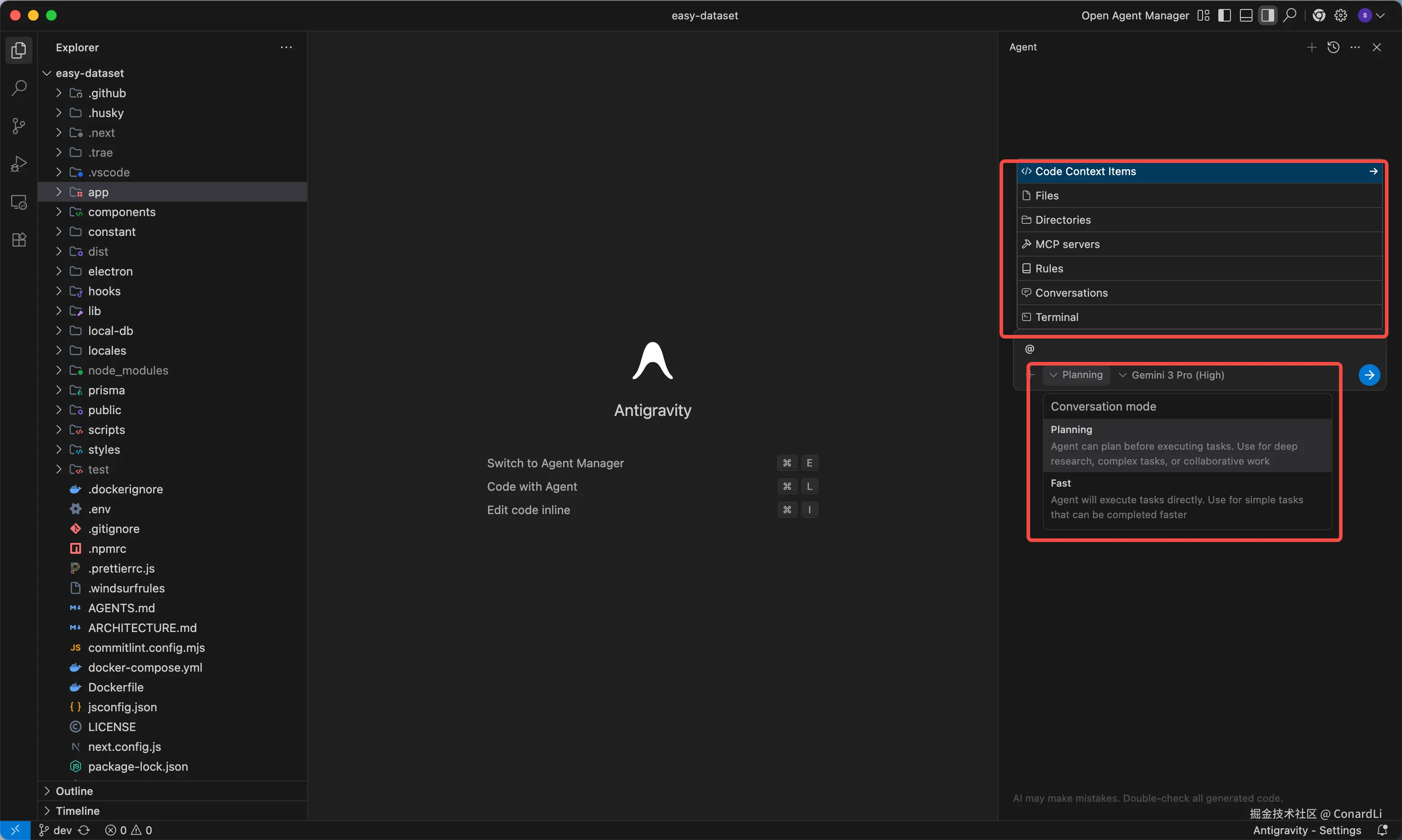 Antigravity 也是基于 VsCode 二次开发的,使用体验感觉也和 Cursor 差不多: