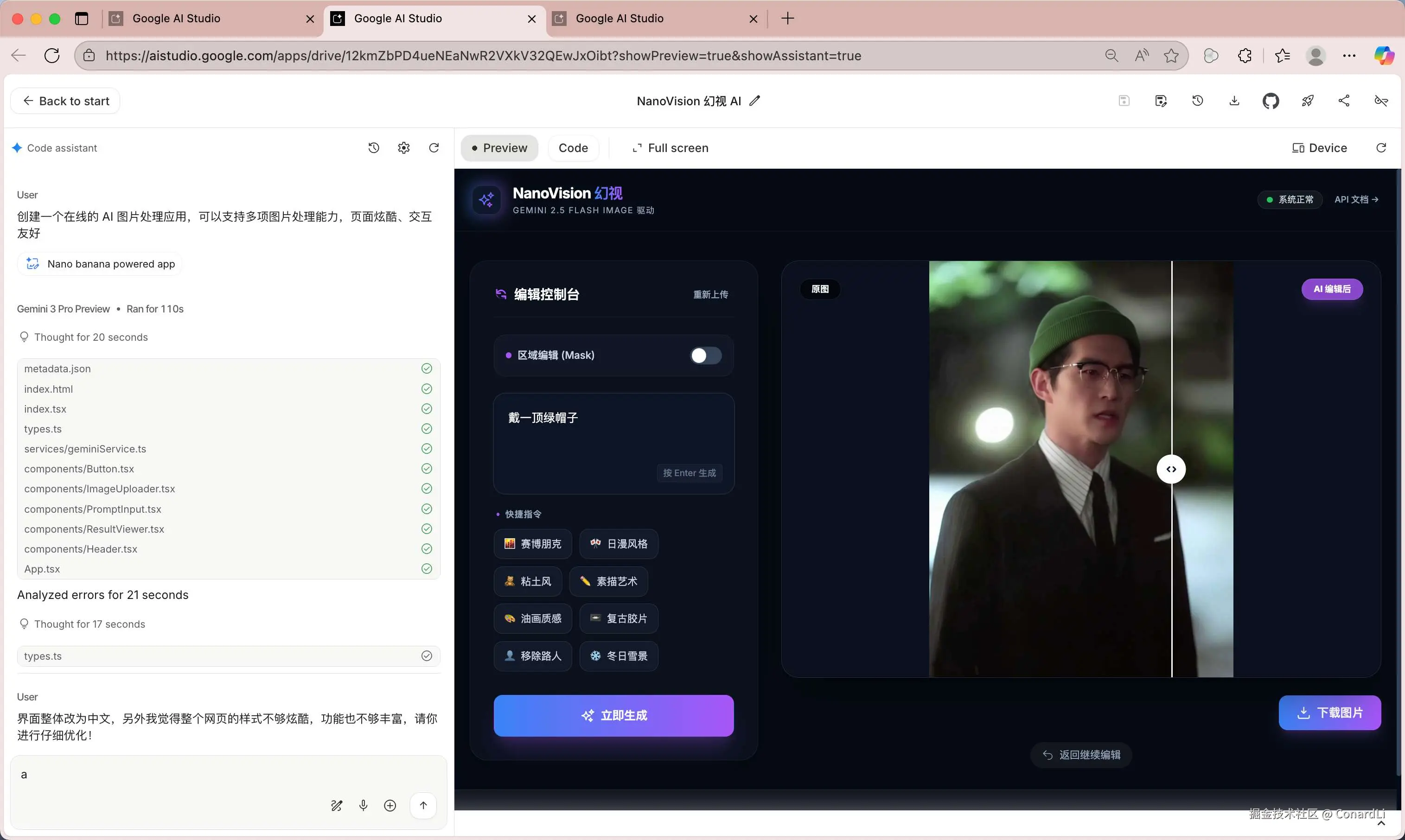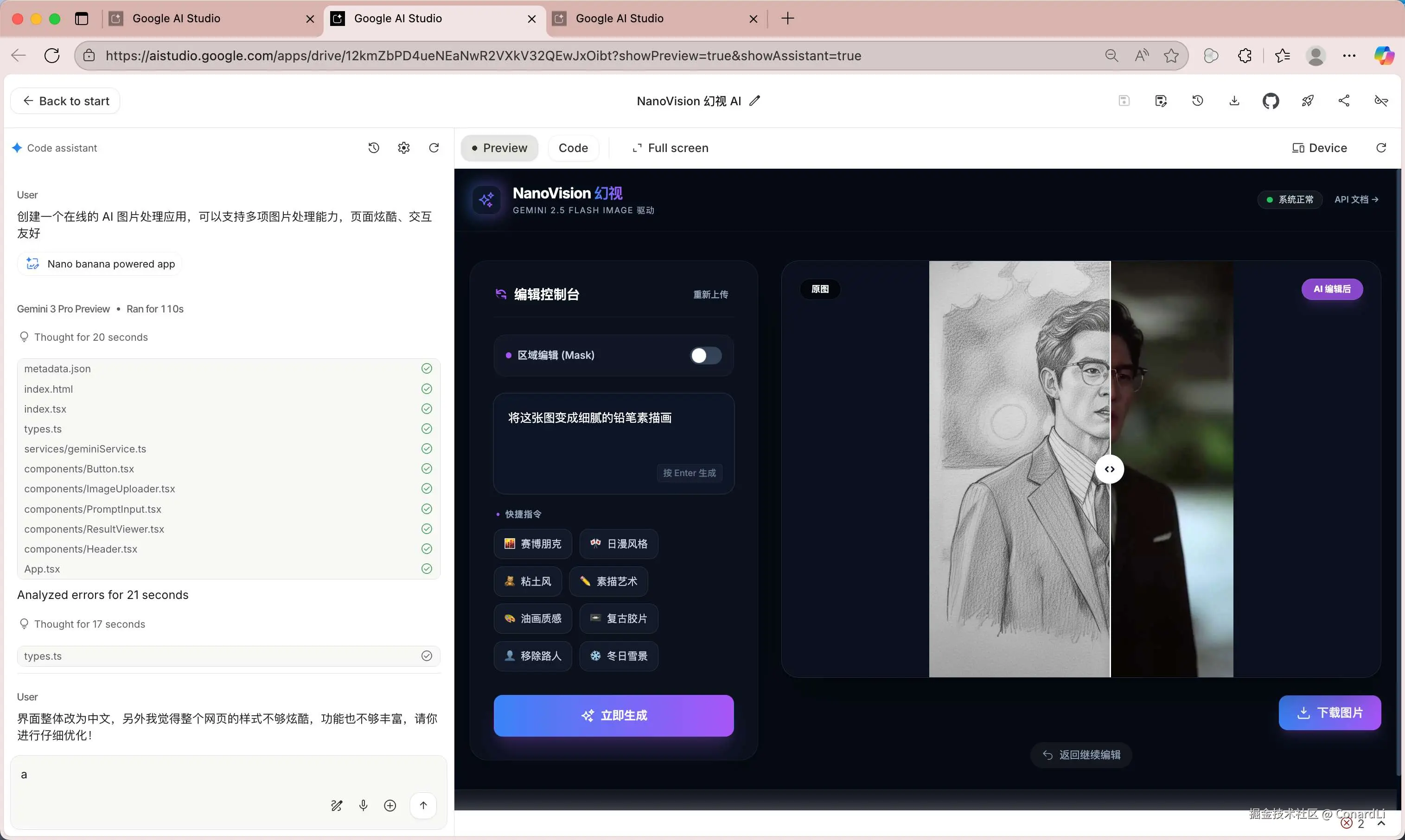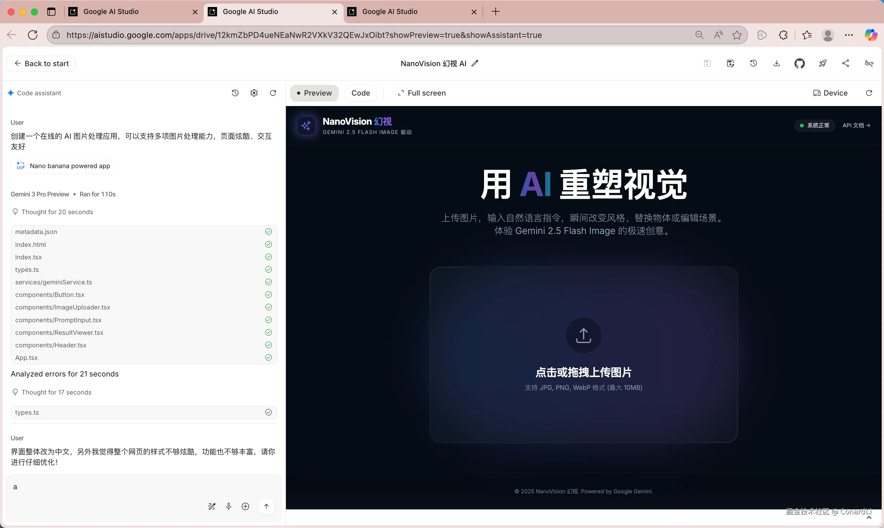 我们来尝试使用 Nano Banana 生成一个在线的 AI 图片处理网站: