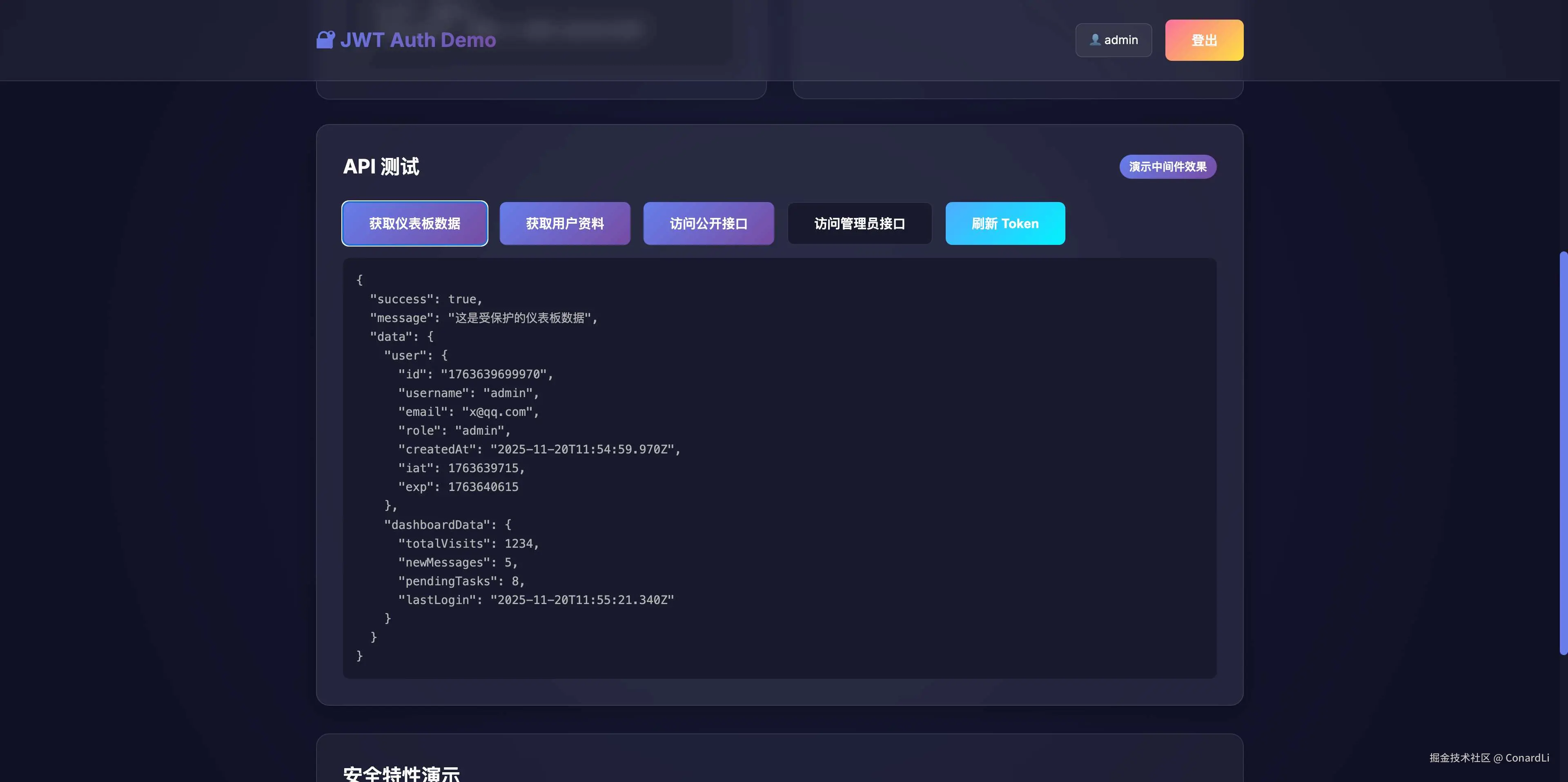 首先包含了完整的注册登录功能,在登录后,可以进行多种维度的接口验证: