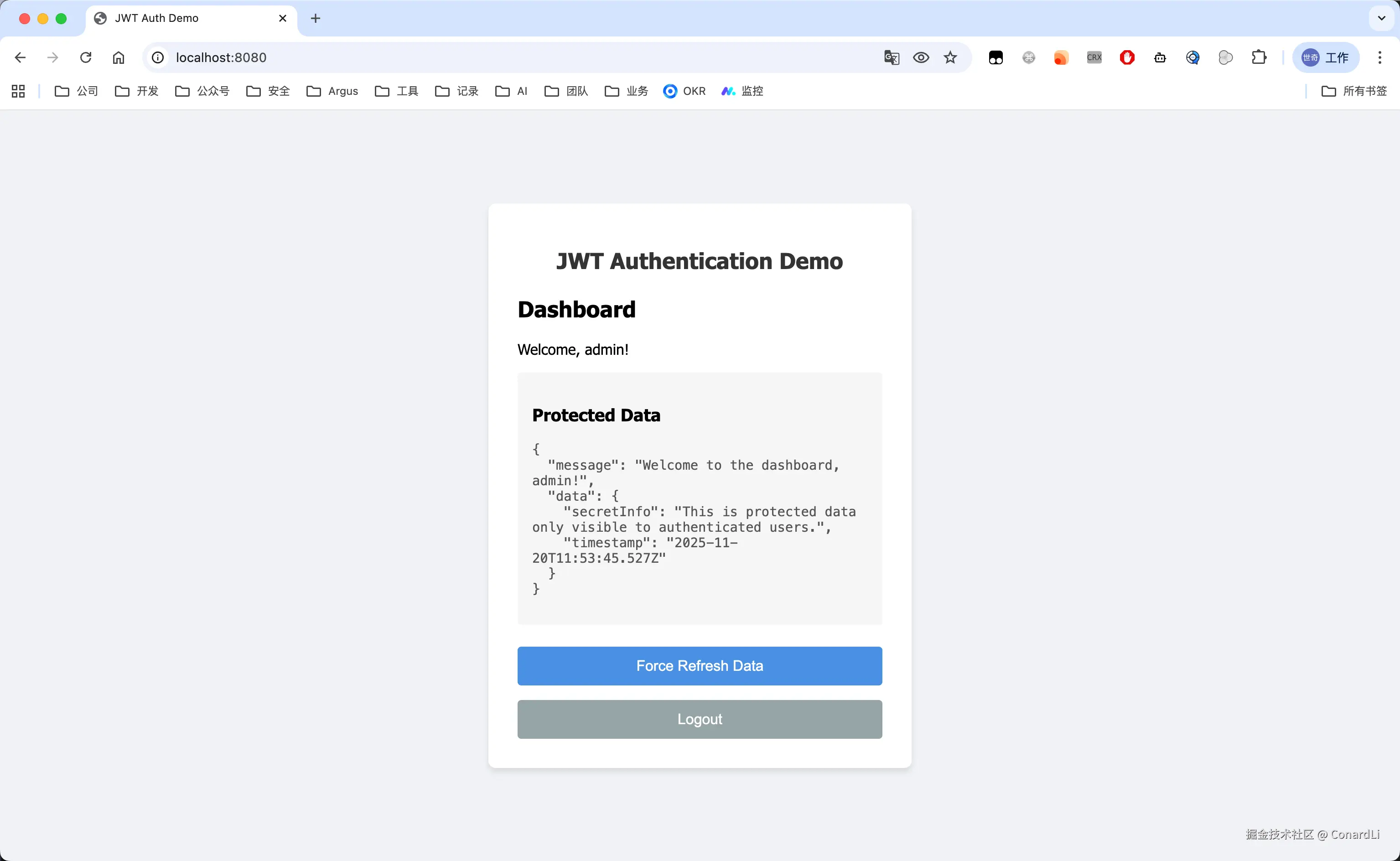 最后只生成了两个页面,一个登录页,一个登录之后的接口验证: