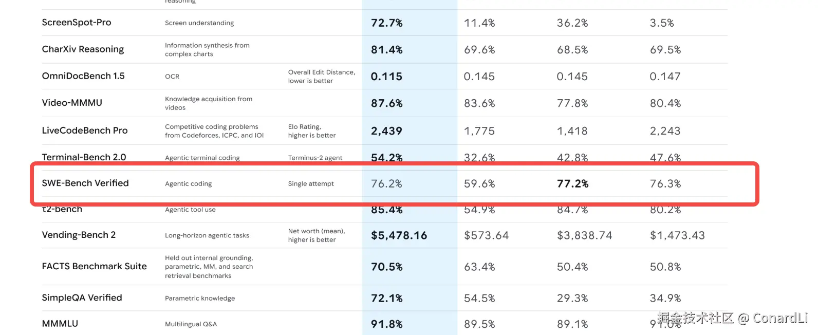 我们先来看一下官方放出的榜单,是不是非常炸裂,除了 SWE-Bench 没能打过 Claude Sonnet 4.5,大部分测试简直是全面屠榜,甚至有些是断崖式领先:
