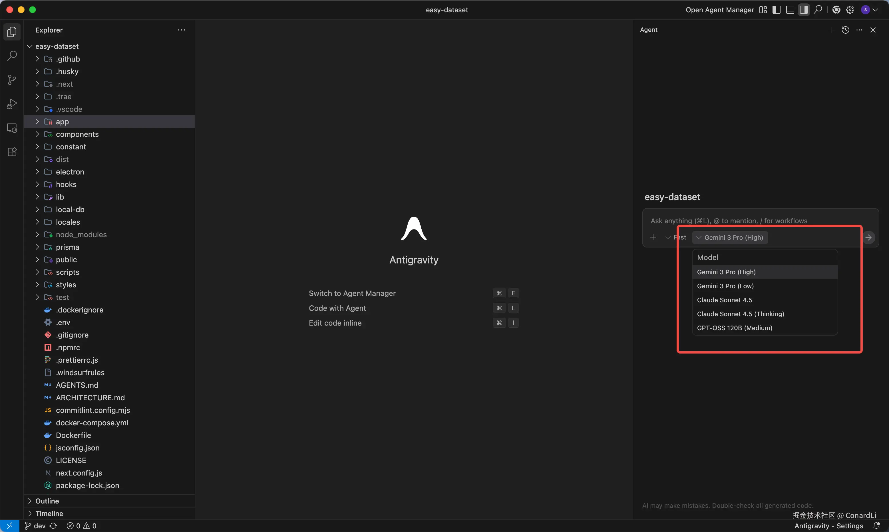 我们直接用 Google 这次和 Gemini 3.0 一起发布的 Antigravity 编辑器,这是一款直接对标 Cursro、Windsurf 的本地 AI 编辑器,可以直接白嫖 Gemini 3 Pro 和 Claude Sonnet 4.5 。