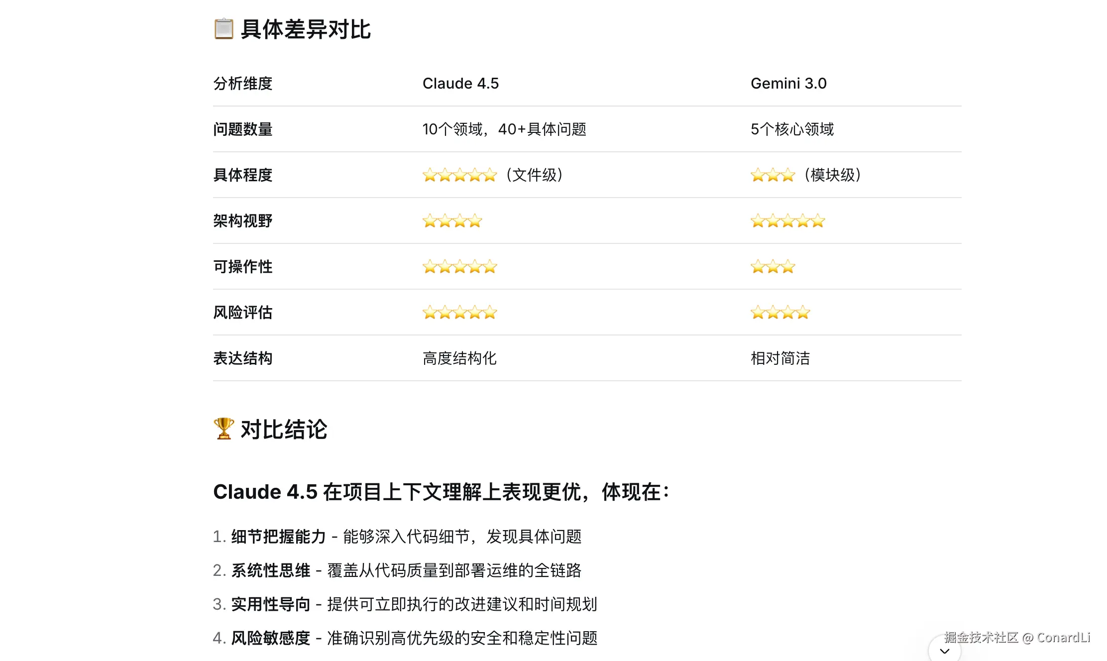 凭我个人对这个项目的理解,乍一看还是 Claude 4.5 生成的结果更准确,而且查看的文件也很关键,给出的建议也都是正确的。