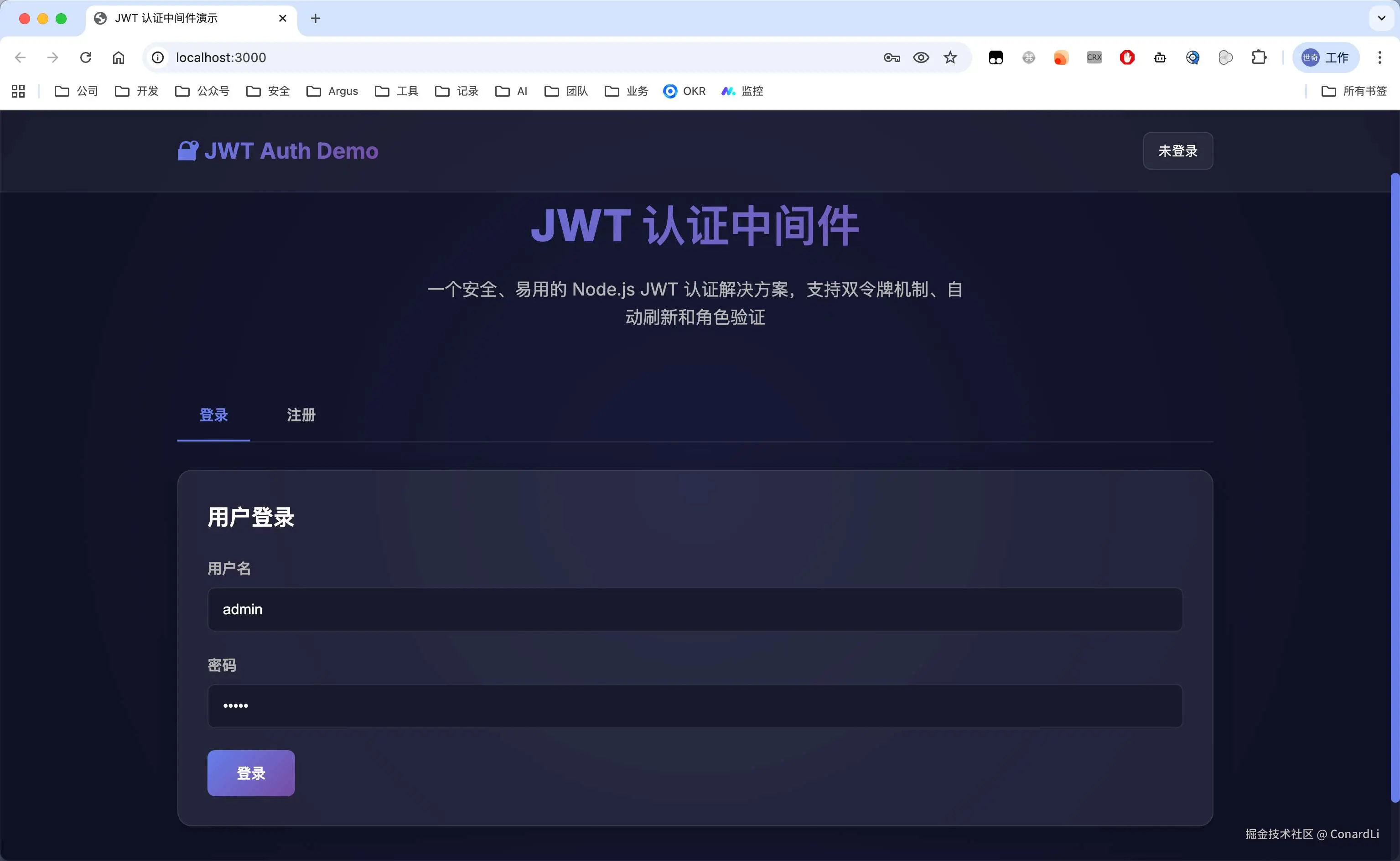 设计并实现一个 Node.js 的 JWT 认证中间件,考虑安全性和易用性;设计对应的前端页面、业务接口来演示中间件的调用效果;创建 Readme 文档,并编写此中间件的架构设计、使用方式等。