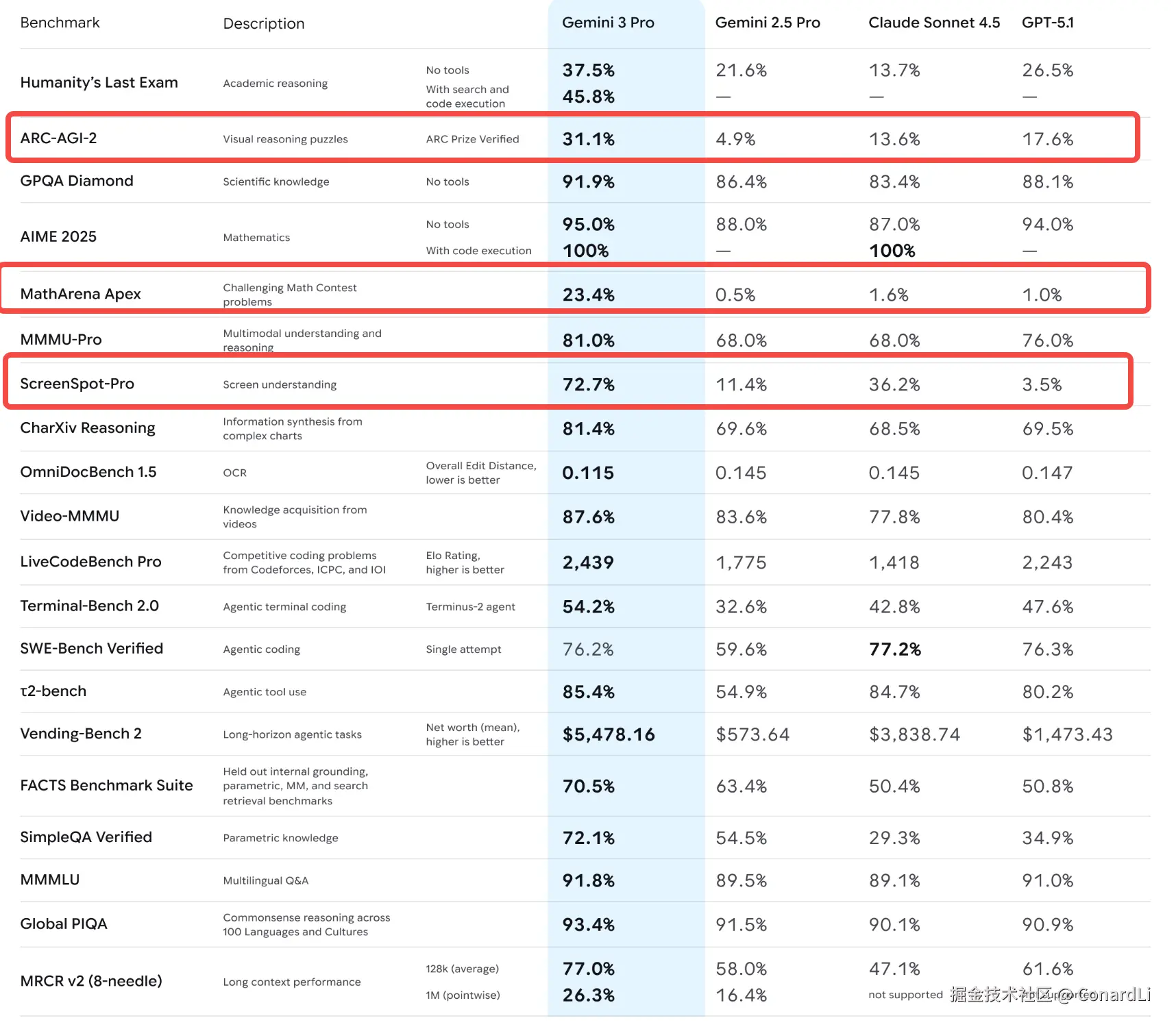 另外,在 ARC-AGI-2、ScreenSpot-Pro、MathArena Apex 等基准上更是数倍领先其他模型: