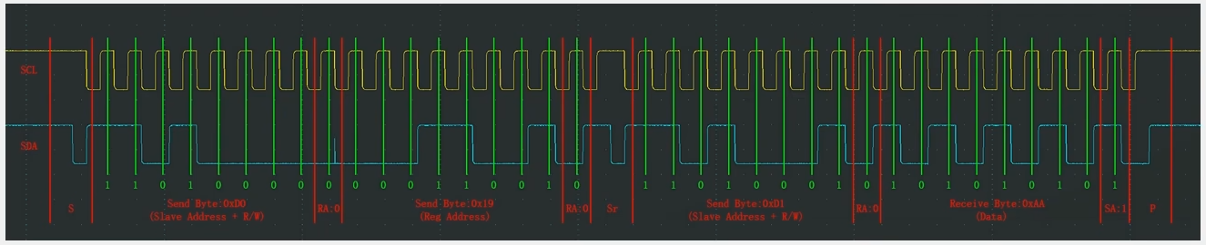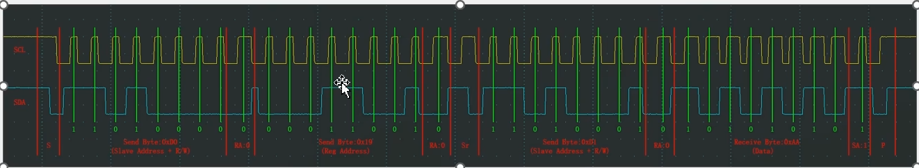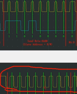 因为I2C是同步时序的原因,这些并不影响我们通信,这也正是同步时序的好处,可以容忍不标准的波形。