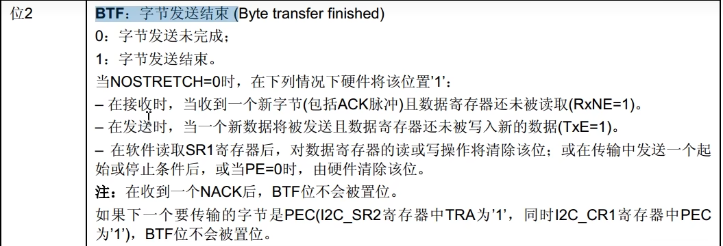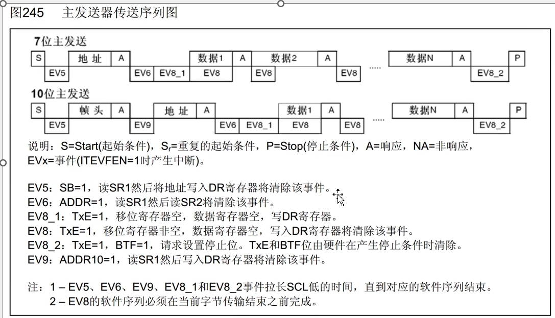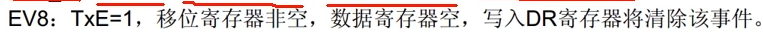 就是我们的EV8_2。TXE等于1,也就是数据寄存器空,BTF就是字节发送结束
