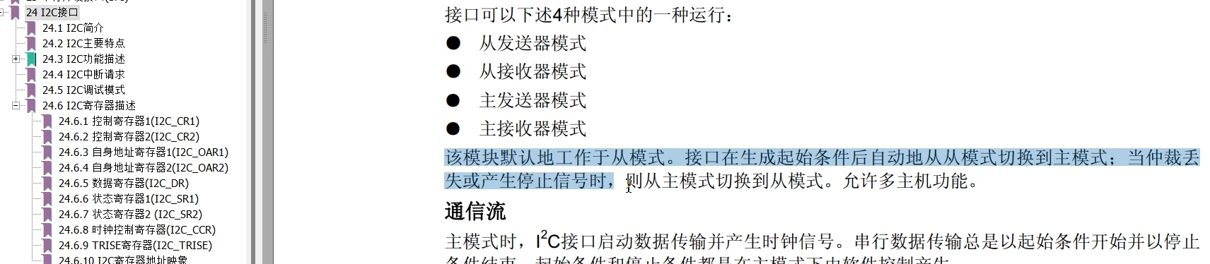 主要看的是I2C的主模式。之后是主发送器,主接收器。