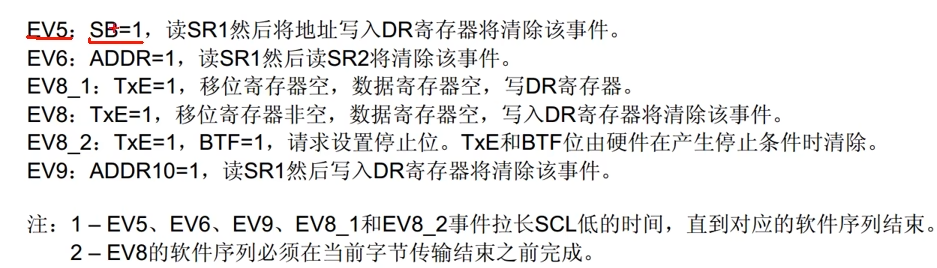 EV5事件就是SB寄存器为1,SB是状态寄存器的一个位。表示了硬件的状态。