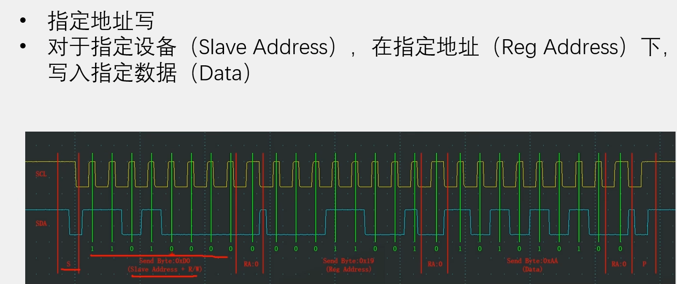 当STM32想要进行指定地址写的时候,就要按照主发送器传输序列图来进行