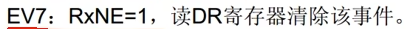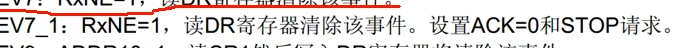 这个状态就是EV7事件。当我们把这个数据读取走之后,这个事件就没有了,当然数据1还没有被读走的时候,数据2就可以直接移入移位寄存器了,之后数据2移位完成收到数据2,产生EV7事件,读走数据2EV7事件就没有了。按照这个流程就可以一直接收数据了。
