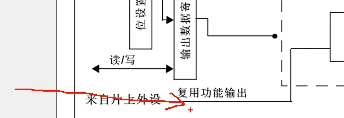 可以看到这里虽然是复用开漏输出,但是I/O引脚的输入部分依然有效,可以通向片上外设。在复用输出模式下,GPIO的输入输出不是由用户的代码直接控制的,而是片上外设。