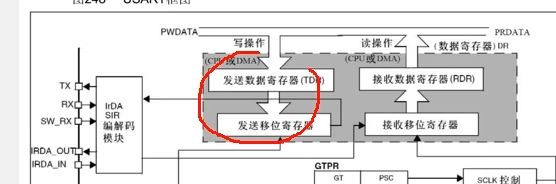 要把这个结构记好,就是发送的时候,数据先写入数据寄存器,如果移位寄存器没有数据,就会转到移位寄存器进行发送