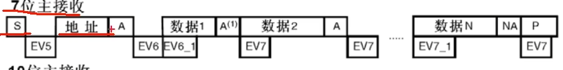 从七位主接收来看,起始--从机地址+读--接收应答--接收数据--发送应答--接收数据--非应答。