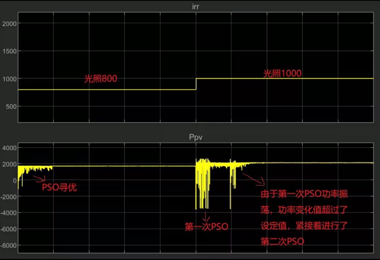 实际应用中,光照条件不断变化。传统MPPT算法可能在光照突变时反应迟缓,无法迅速找到新的最大功率点。咱们这个基于可重启PSO的MPPT就不一样啦!一旦检测到光照改变,粒子群算法会重启,重新开始搜索最大功率点,实现动态追踪。