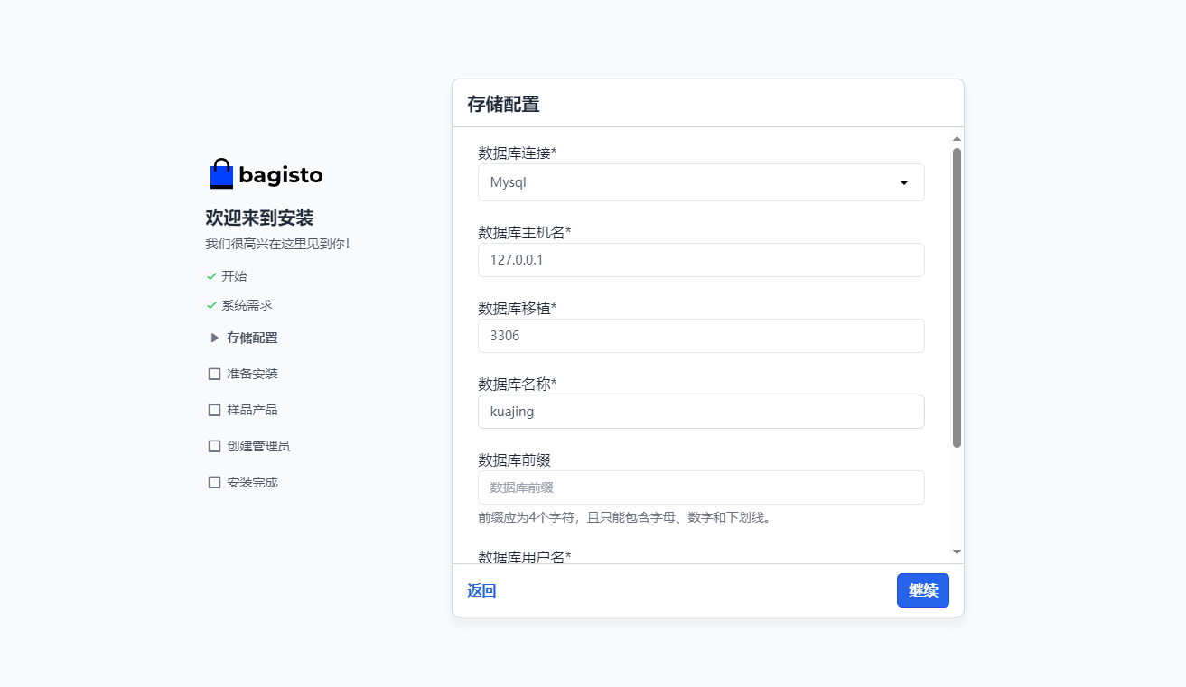 然后安装laravel项目,制定文件夹/bagisto-2.3/public;