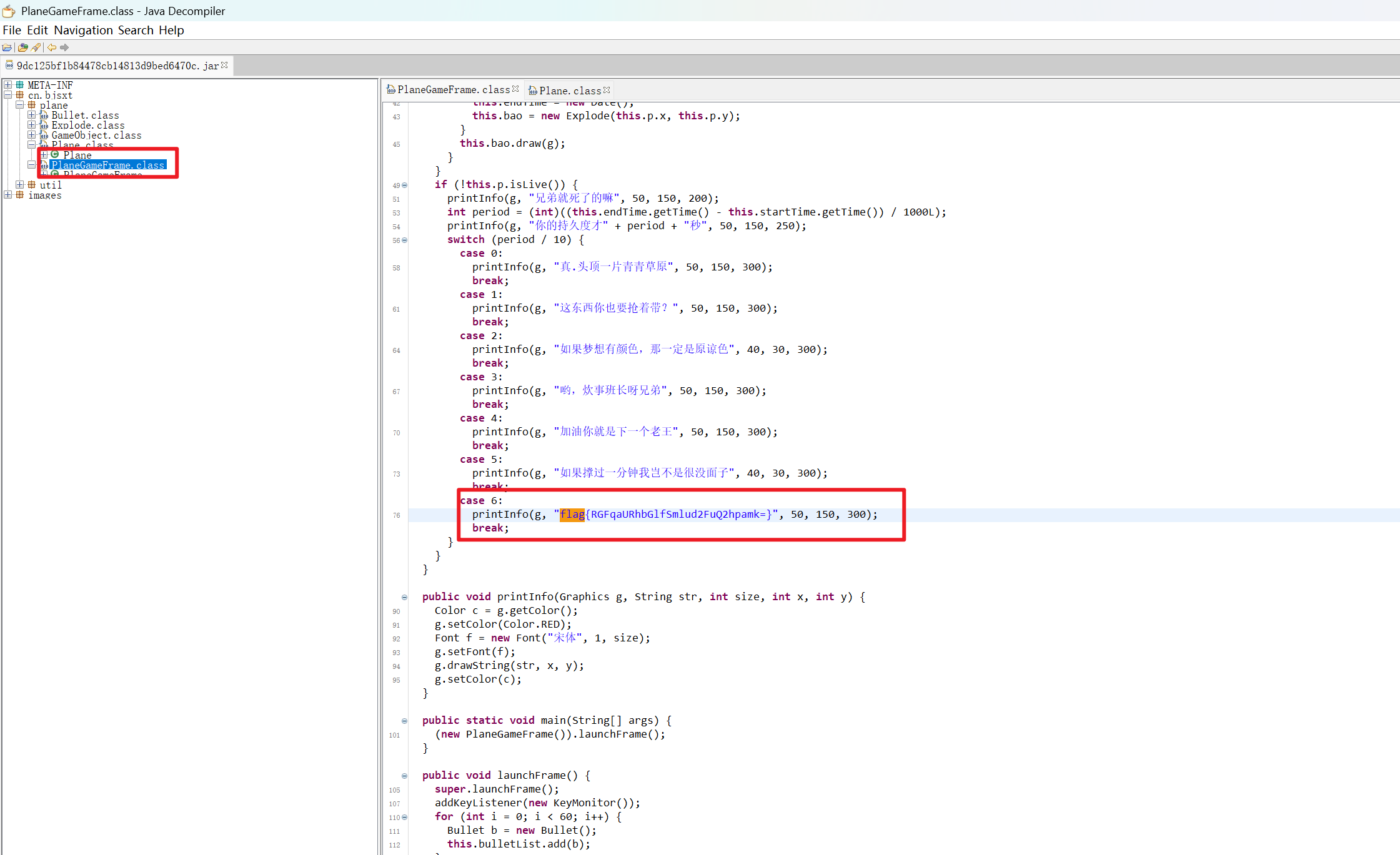 最后在cn.bjsxt.plane.PlaneGameFrame下发现关键字flag: