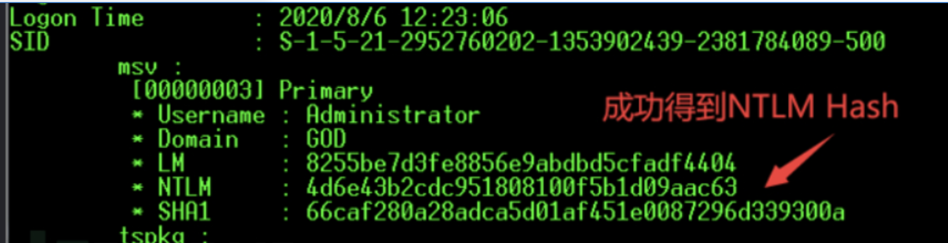 用户登录windows时,windows首先会待用winlogon.exe进程接收用户输入的密码,之后密码会被传递给lsass.exe进程,进程会先在内存中存储一份明文密码,并且将密码加密为NTLM hash,域本地的sam数据库中的用户的NTLM hash做对比,一致则登陆成功。