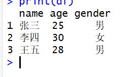 ✅ 练习:创建一个包含姓名、年龄、性别的数据框。
