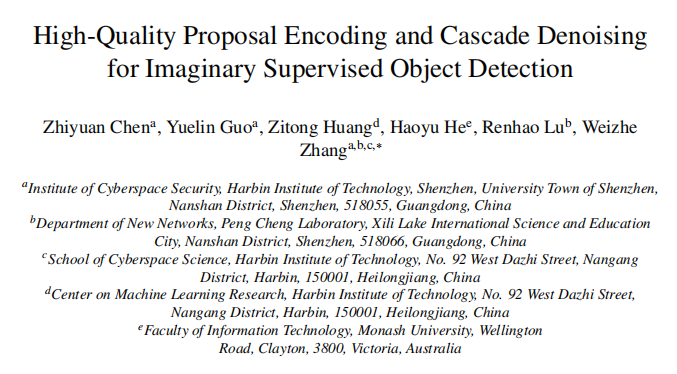 论文标题: High-Quality Proposal Encoding and Cascade Denoising for Imaginary Supervised Object Detection