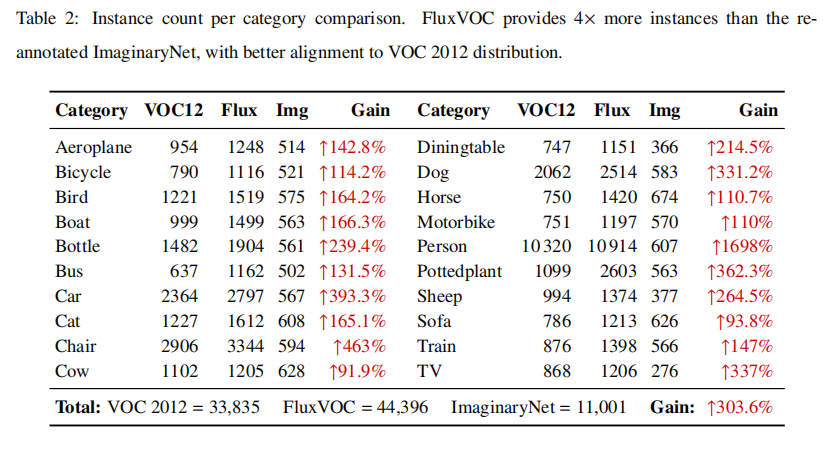 为了证明新构建的FluxVOC数据集的优越性,论文首先将其与之前的ImaginaryNet进行了对比。