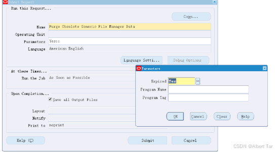 注意:该程序仅针对FND_LOBS中指定了过期时间的数据进行删除,其它数据则不删除。提交参数时仅将"Expired"指定为YES即可,其余默认。在12.2之后的版本中会多出一个参数"Purge Orphaned Attachements",默认为NO即可