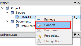 S7-1200 OPC UA Server添加成功后右键选中点击"Connect",连接服务器,如图13所示。