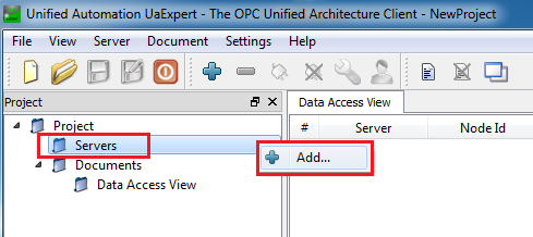 打开UaExpert,在项目左侧,右键点击"Servers"添加服务器,如图10所示。