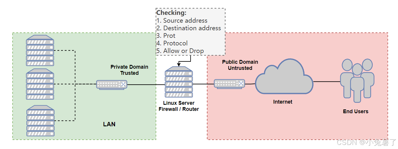 - 在 CentOS 7 之后的发行版中, firewalld 取代 iptables 成为了默认防火墙软件。