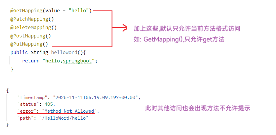 ·当只修饰方法时 ,描述该方法唯一资源路径 ,可以通过 协议 + ip + 对应的方法路径访问返回值