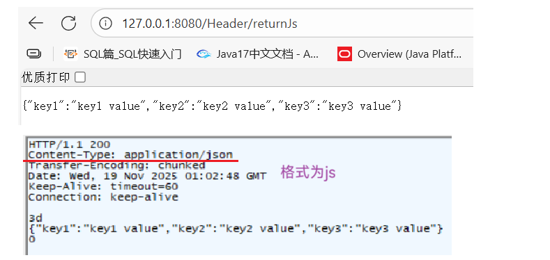 注:如果返回是test.html、test.plain格式(具体使用时查看)等,前段需要将数据转化为对象使用;若是applaction.js,则直接使用