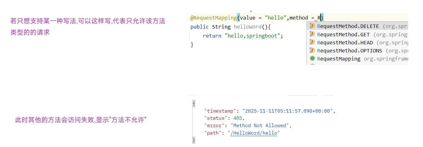 前面学习了简单使用,但在http中需要请求格式(post、get、delete等),那在RequestMapping中的请求格式是??