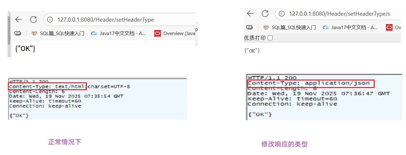 · @ResponseBody 使控制器方法的返回值直接以 JSON、XML 等格式写入 HTTP 响应体(浏览器),而非进行视图渲染