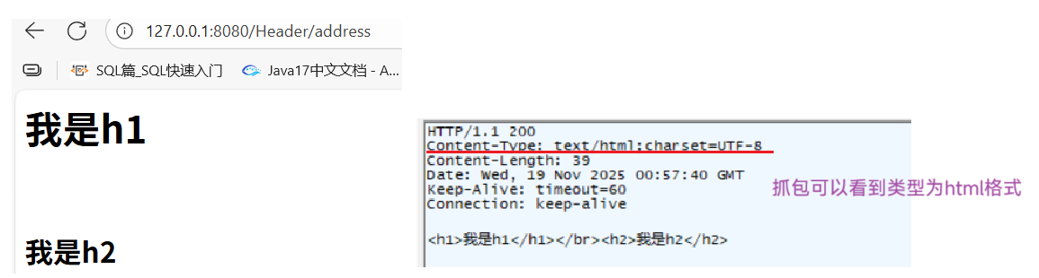 return "<h1>我是h1</h1></br><h2>我是h2</h2>";
