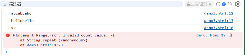 // console.log("x".repeat(-1)); // RangeError