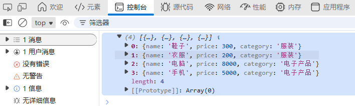 { name: "电脑", price: 8000, category: "电子产品" },