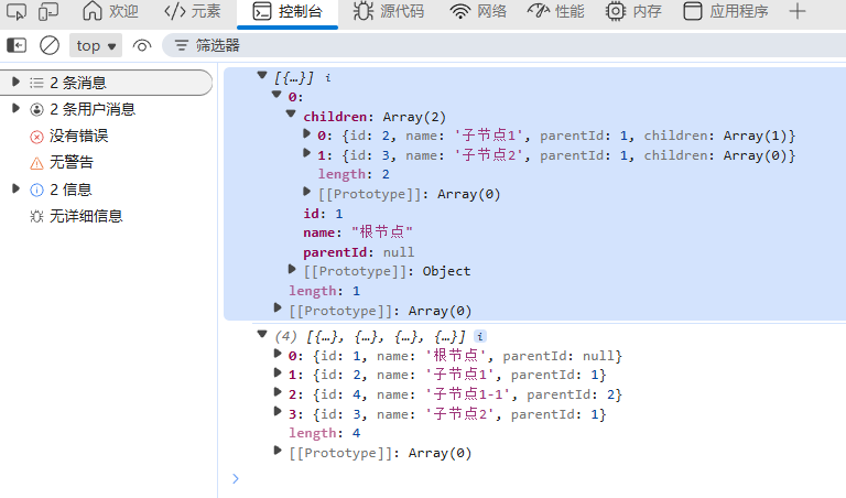 { id: 2, name: "子节点1", parentId: 1 },