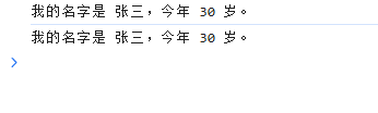 console.log(message); // "我的名字是 张三,今年 30 岁。"