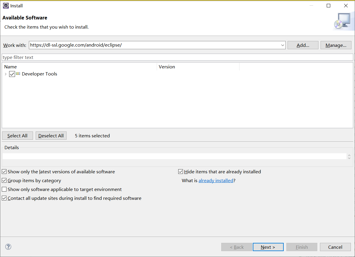 下面以 Eclipse Oxygen 4.7.2 ADT(android developer tools) Plugin 安装安卓插件为例: