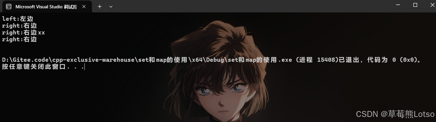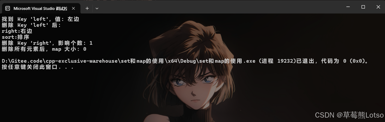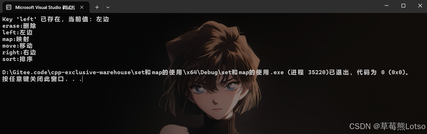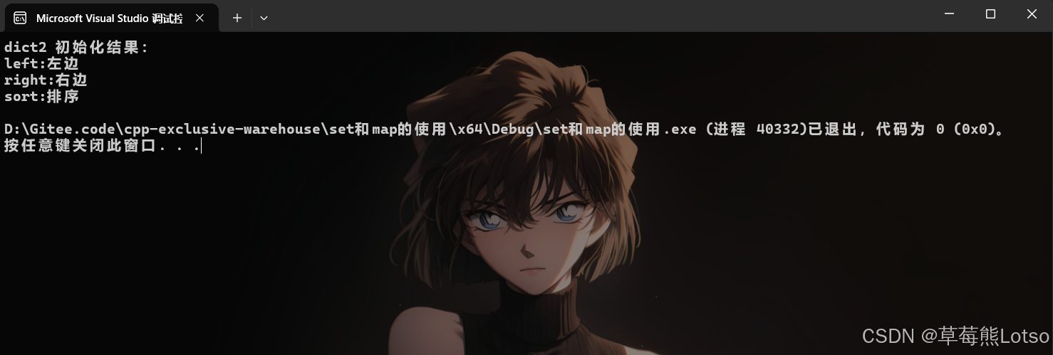 注意 :dict2 遍历结果按 Key 升序排列(left < right < sort ,按 ASCII 码比较),体现 map 自动排序特性。