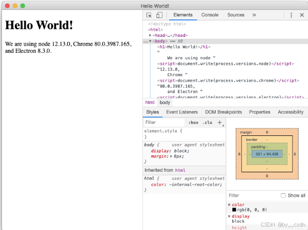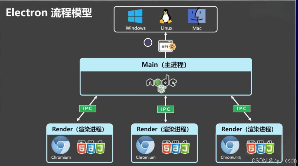 Electron是一个使用 JavaScript、HTML 和 CSS 构建桌面应用程序的框架。 嵌入 Chromium 和 Node.js 到 二进制的 Electron 允许您保持一个 JavaScript 代码代码库并创建 在Windows上运行的跨平台应用 macOS和Linux------不需要本地开发 经验。