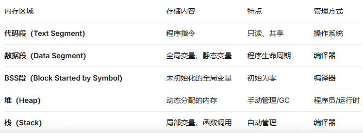 从程序的角度看,内存结构还包括以下几个部分,对应的硬件有磁盘/Cache/DRAM/寄存器