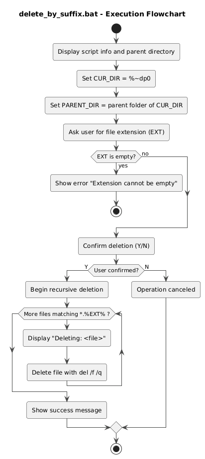"删除当前 BAT 文件的父文件夹下所有指定后缀文件,并希望脚本支持控制台输入文件后缀,提示要英文化、交互友好。"