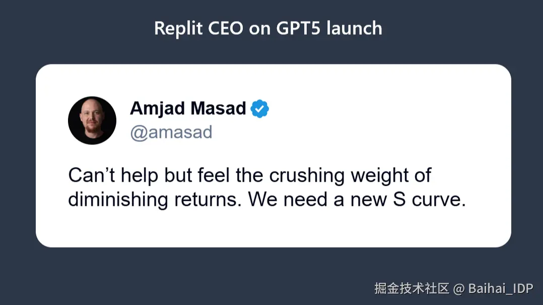 使用 AI 编程工具的开发者们明显感到了失望。基于 OpenAI 模型构建 AI 编程工具的公司(如 Cursor、Replit)曾押下数十亿美元,赌定每次模型发布都会带来指数级的进步。GPT-5 却打破了这一预期,而这本不该发生。从 GPT-3 笨拙的算术能力,到 GPT-4 生成连贯代码的能力,进步似乎势不可挡。整个行业正是建立在对持续进步的预期之上。但在过去一年里,这种进步明显停滞了。