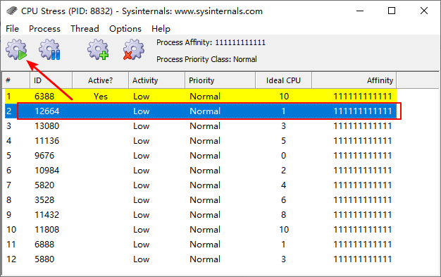| Affinity | 允许运行的核 位掩码 | 111111111111(12 个 1)→ 代表有12核cpu,可以在12核中随便跑 |