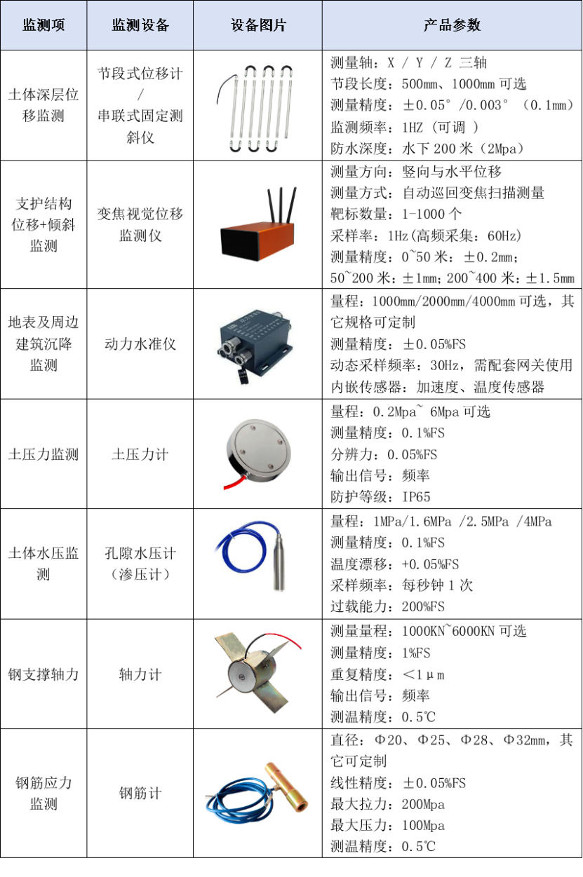 基坑施工安全监测项目的主要监测指标及所用的基坑监测传感器: