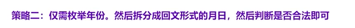 所以当月日是 0229 时,只能构造出 92200229 ,然后只需要判断 9220 是否是闰年即可(又因为9220是闰年,所以这个日期合法)。