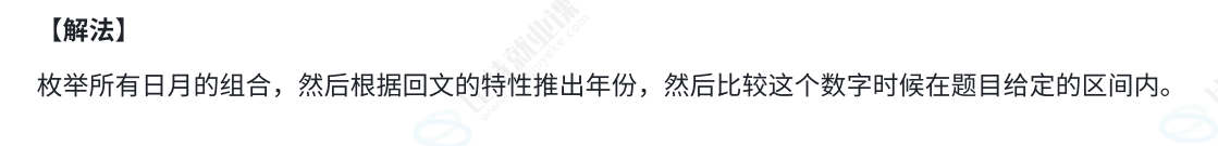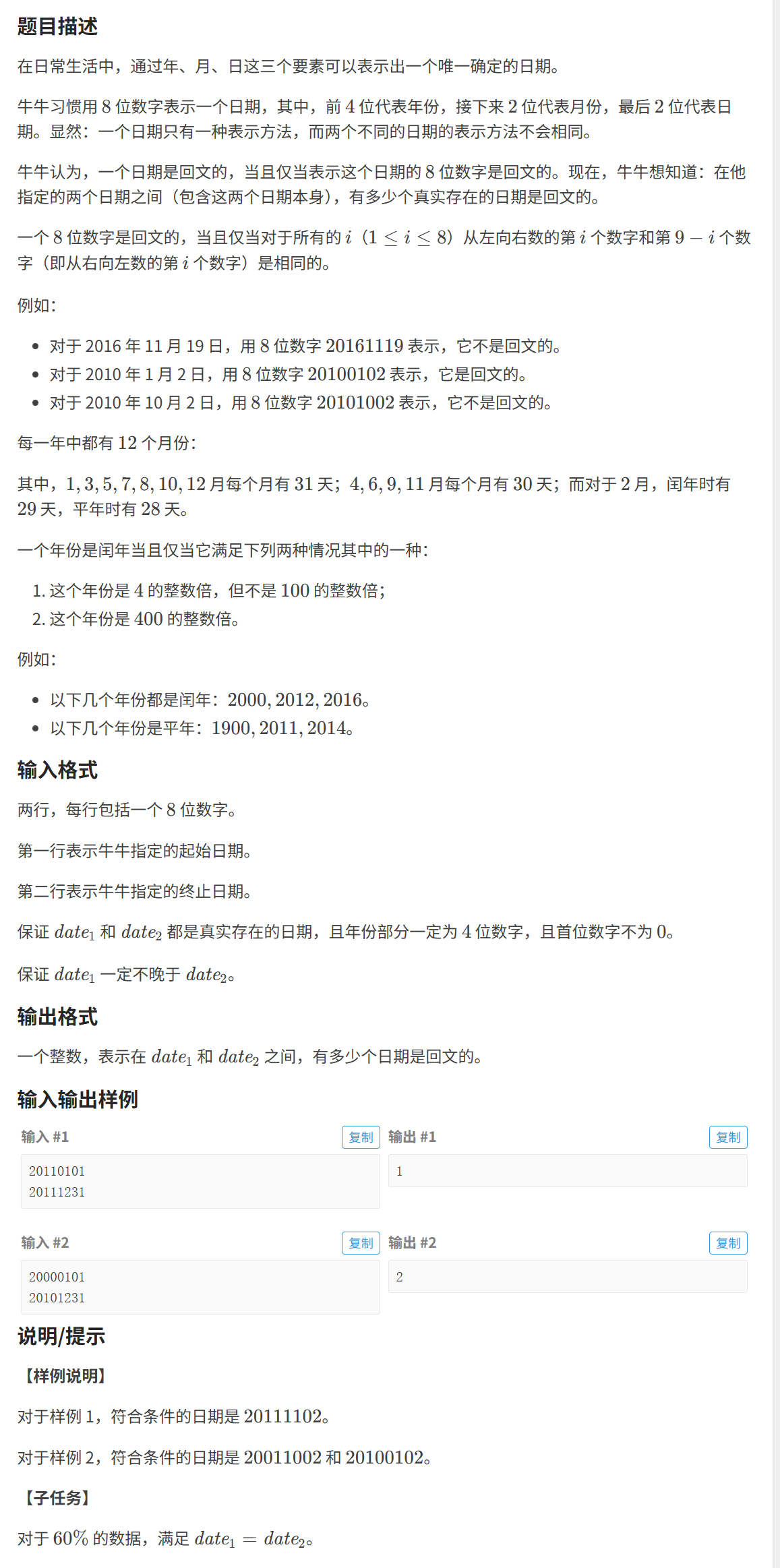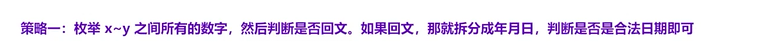 回文日期的结构决定了:只要月日合法,且对应的年份构造正确,得到的日期一定是回文的(不需要额外判断回文);