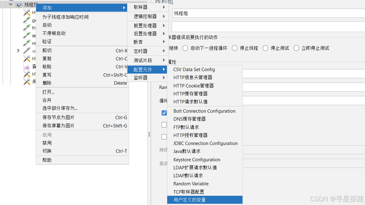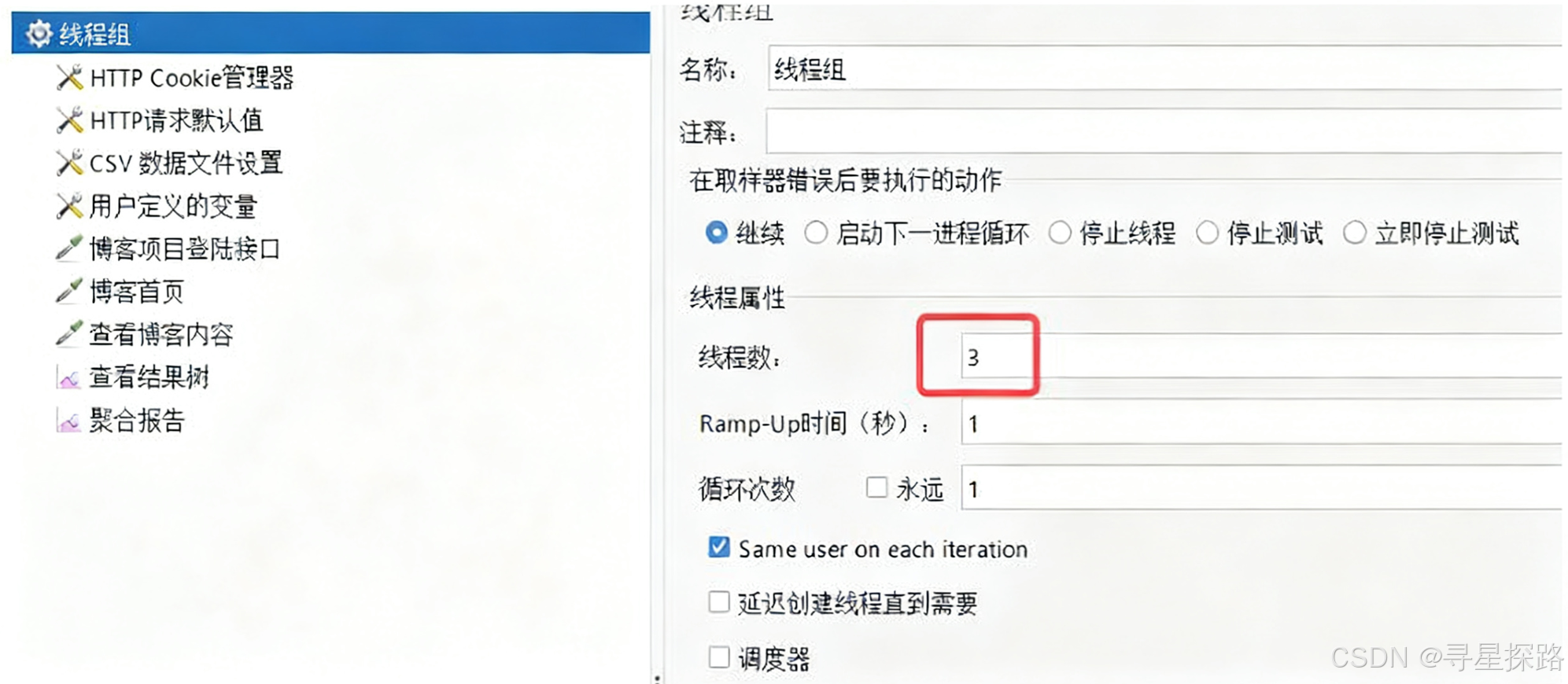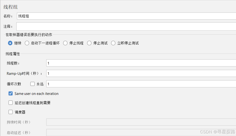控制JMeter将用于执行测试的线程数,也可以把一个线程理解为一个测试用户。